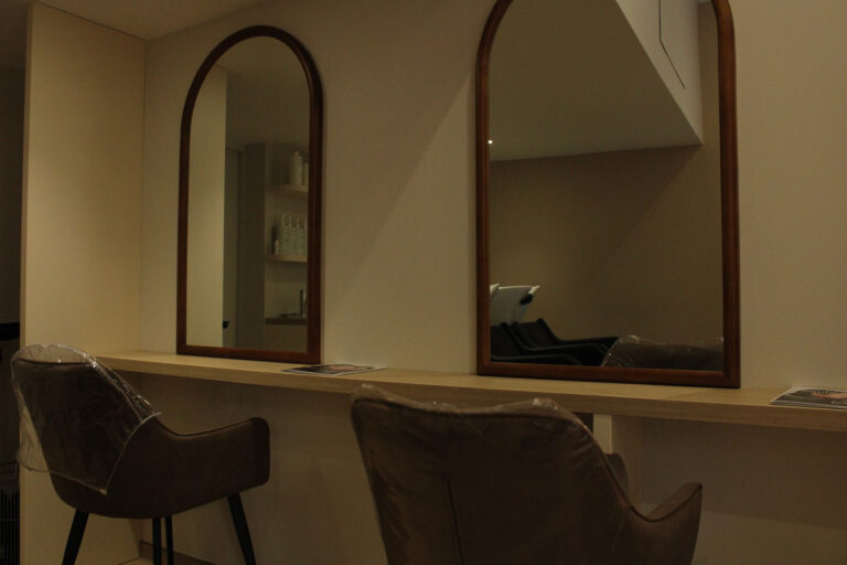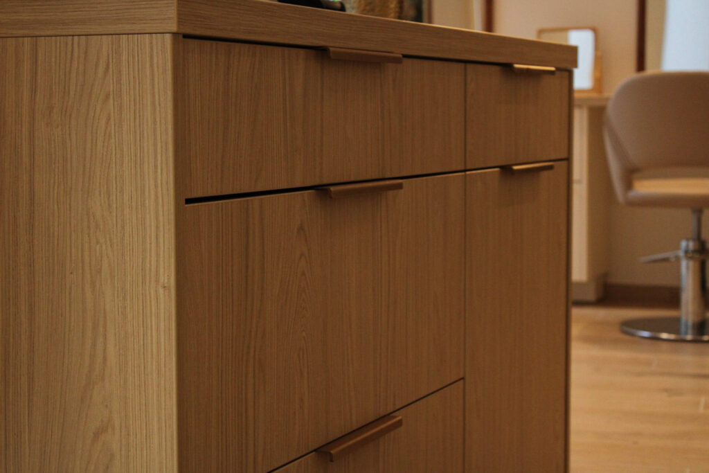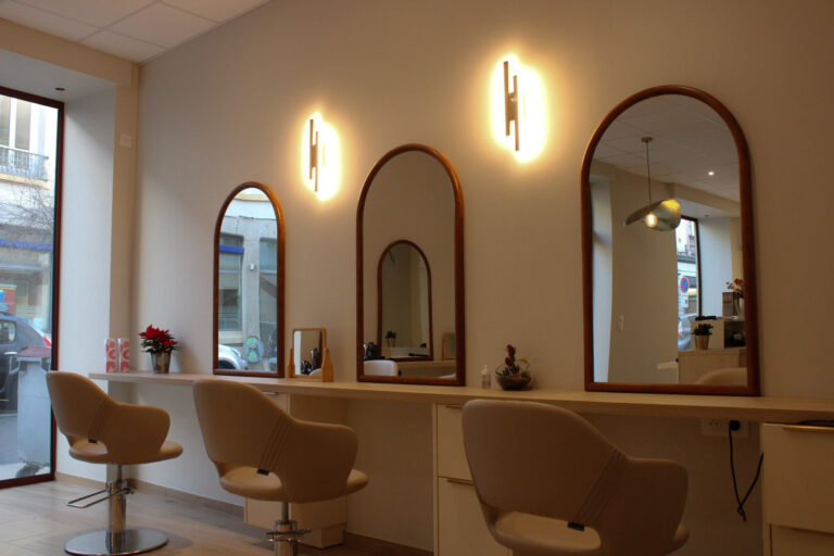 Chaque élément a été pensé pour allier esthétique, fonctionnalité et durabilité, afin d’offrir un espace de travail confortable et une expérience client qualitative, fidèle à l’image du salon.